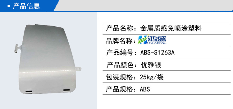 優雅銀金屬質感免噴涂 ABS料在汽車外飾上的廣泛應用。這款產品采用編號ABS-S1263A原料生產制作,能夠達到金屬質感無流痕的效果。色澤潤亮,效果超出了客戶的預期,深受客戶的喜愛。
