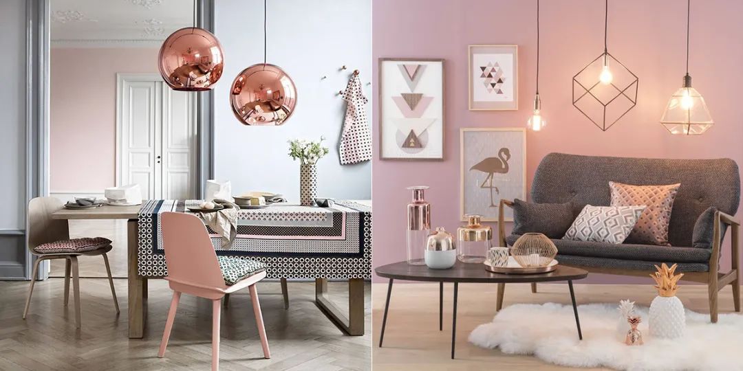 “玫瑰金”餐桌、 “玫瑰金”燈具或者 “玫瑰金”桌面飾品,它可以無處不在,它的存在能提升家居環境的檔次且不顯庸俗,這是一種溫暖和諧的搭配。